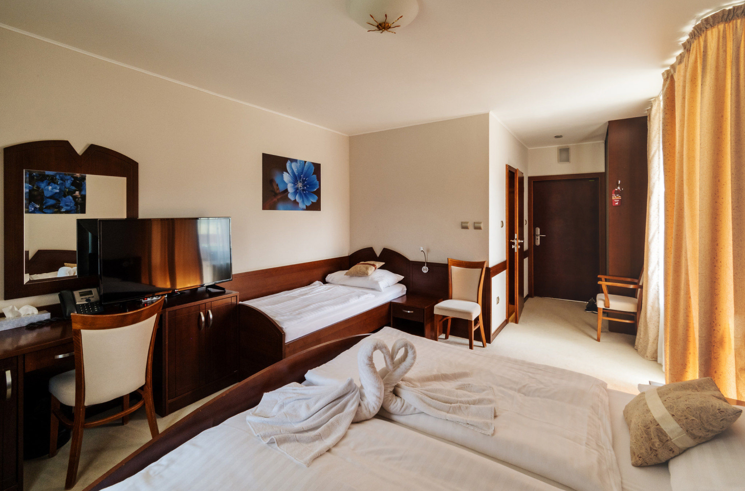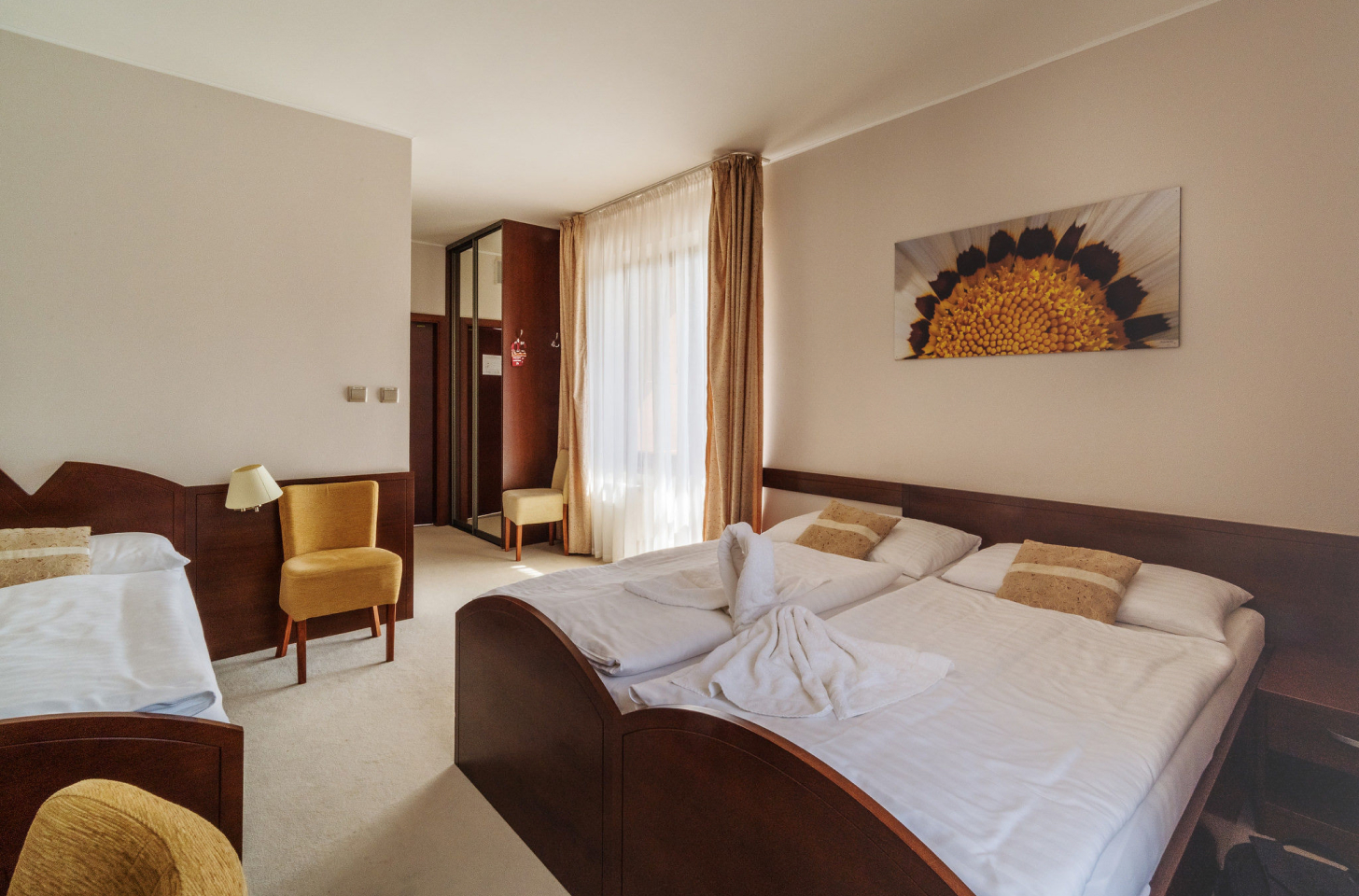 At Hotel IMPOZANT**** you don't have to worry about restrictions or unreasonable obstacles. For all our guests with limited mobility, we offer a specially adapted, modern triple room with a balcony, which assures you that every day has its own magic as you look out over the surrounding countryside. So don't let it get away from you.